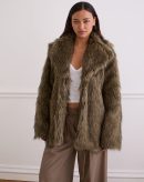 A faux fur jacket is a wardrobe staple. In a faux fur long brown, the Lupita jacket features an oversize lapel collar and longline fit. We love to style with a classic pair of Roomy jeans.